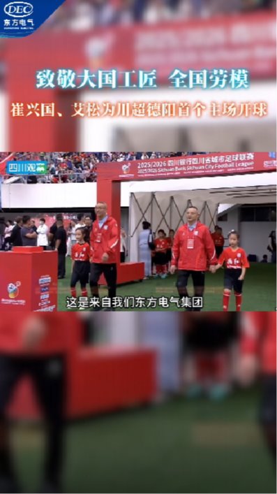 大国工匠崔兴国、全国劳模艾松为“川超”德阳首个主场开球。
