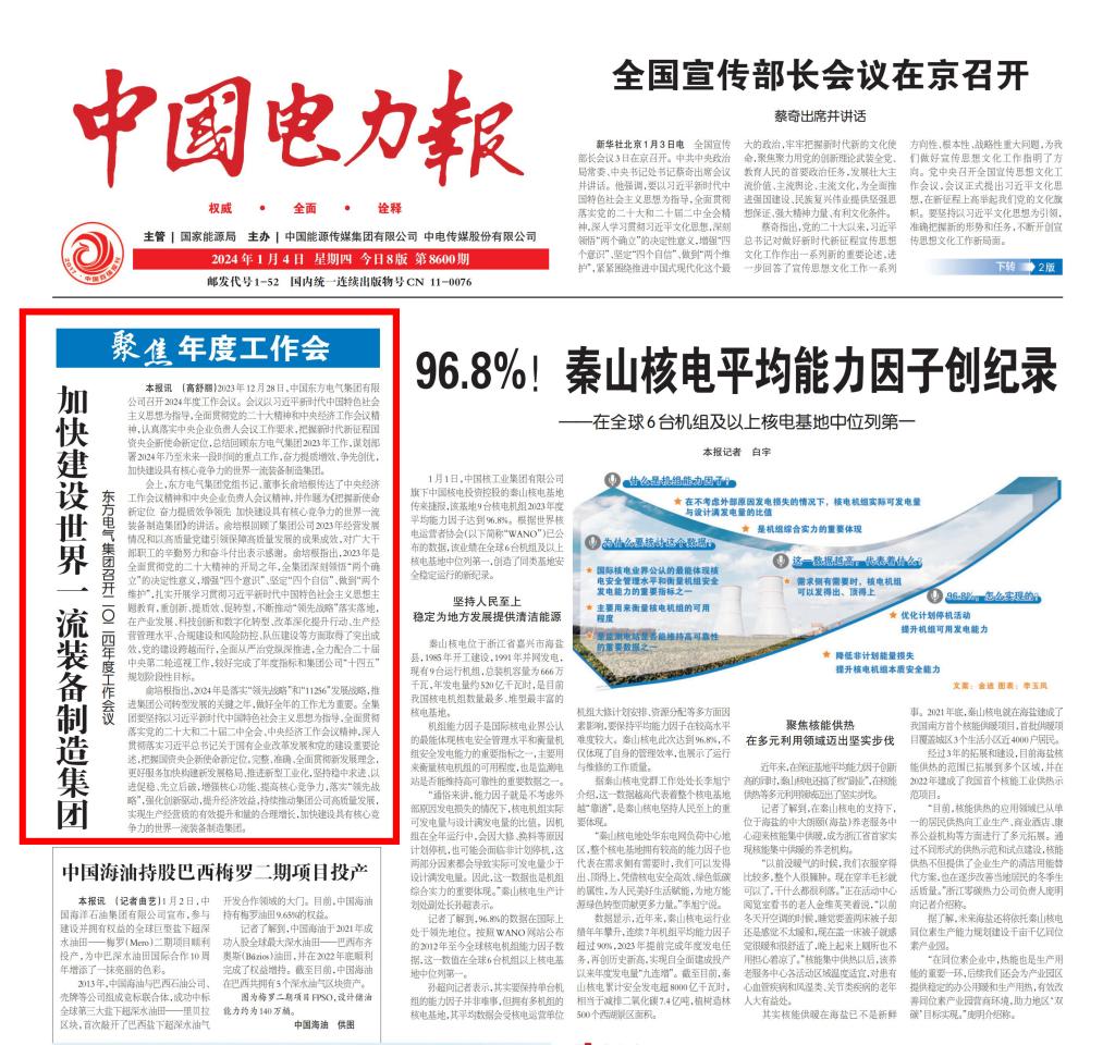 [中国电力报]加快建设世界一流装备制造集团 乐动网召开二〇二四年度工作会议