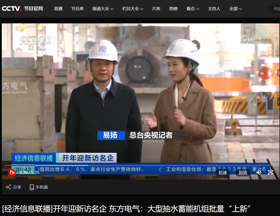 [央视经济信息联播]开年迎新访名企 东方电气:大型抽水蓄能机组批量“上新”