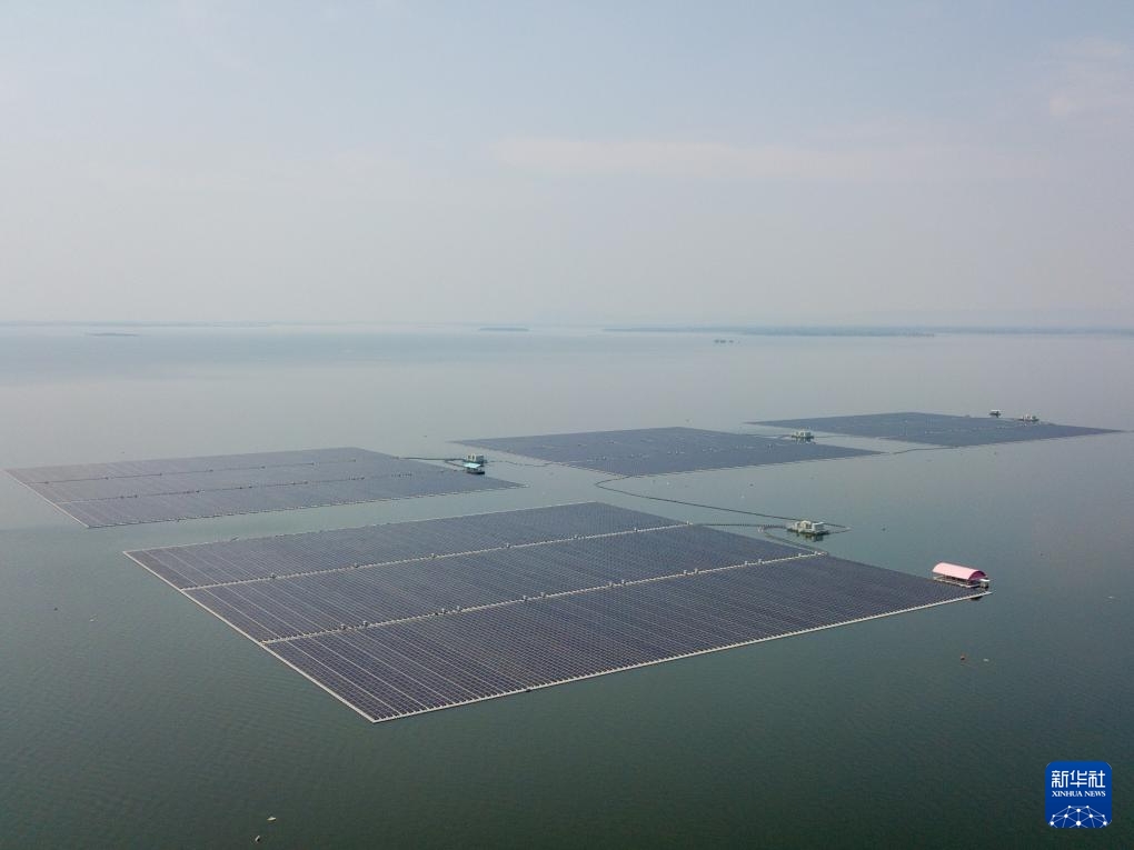 这是3月5日拍摄的泰国孔敬府乌汶叻水面漂浮光伏电站(无人机照片)。新华社记者 林昊 摄