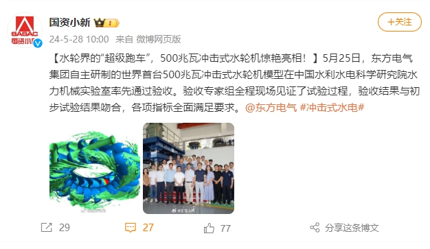 [国资小新]水轮界的“超级跑车”,500兆瓦冲击式水轮机惊艳亮相!
