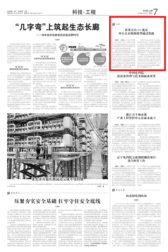 [中国电力报]世界首台500兆瓦冲击式水轮机模型通过验收