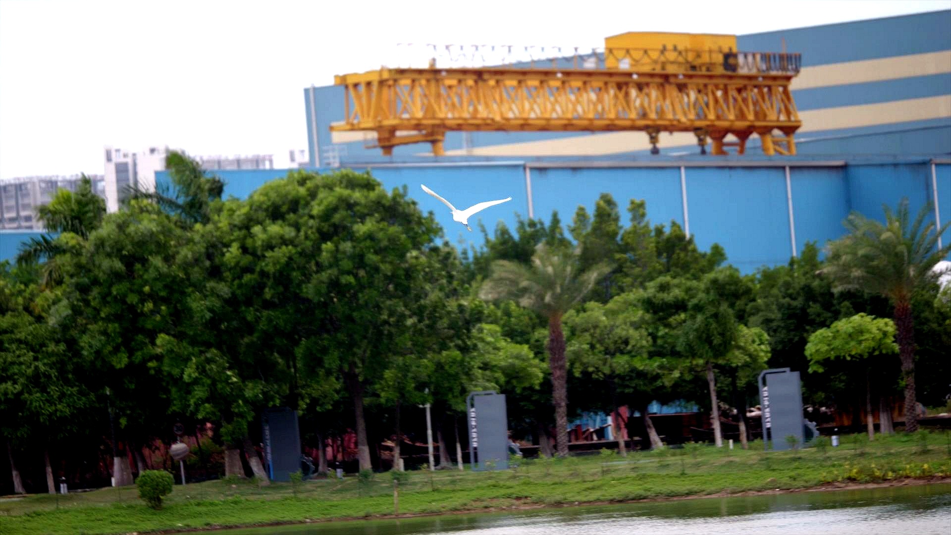 自2021年起至今,东方重机在园区内的活水湖共投放了2000斤鱼苗,50只白天鹅等动物在这片湖内自由地生存繁衍,企业每天安排专人投喂饲料照顾,优美的环境吸引了野生白鹭的驻留,还成为小猫们的乐园。