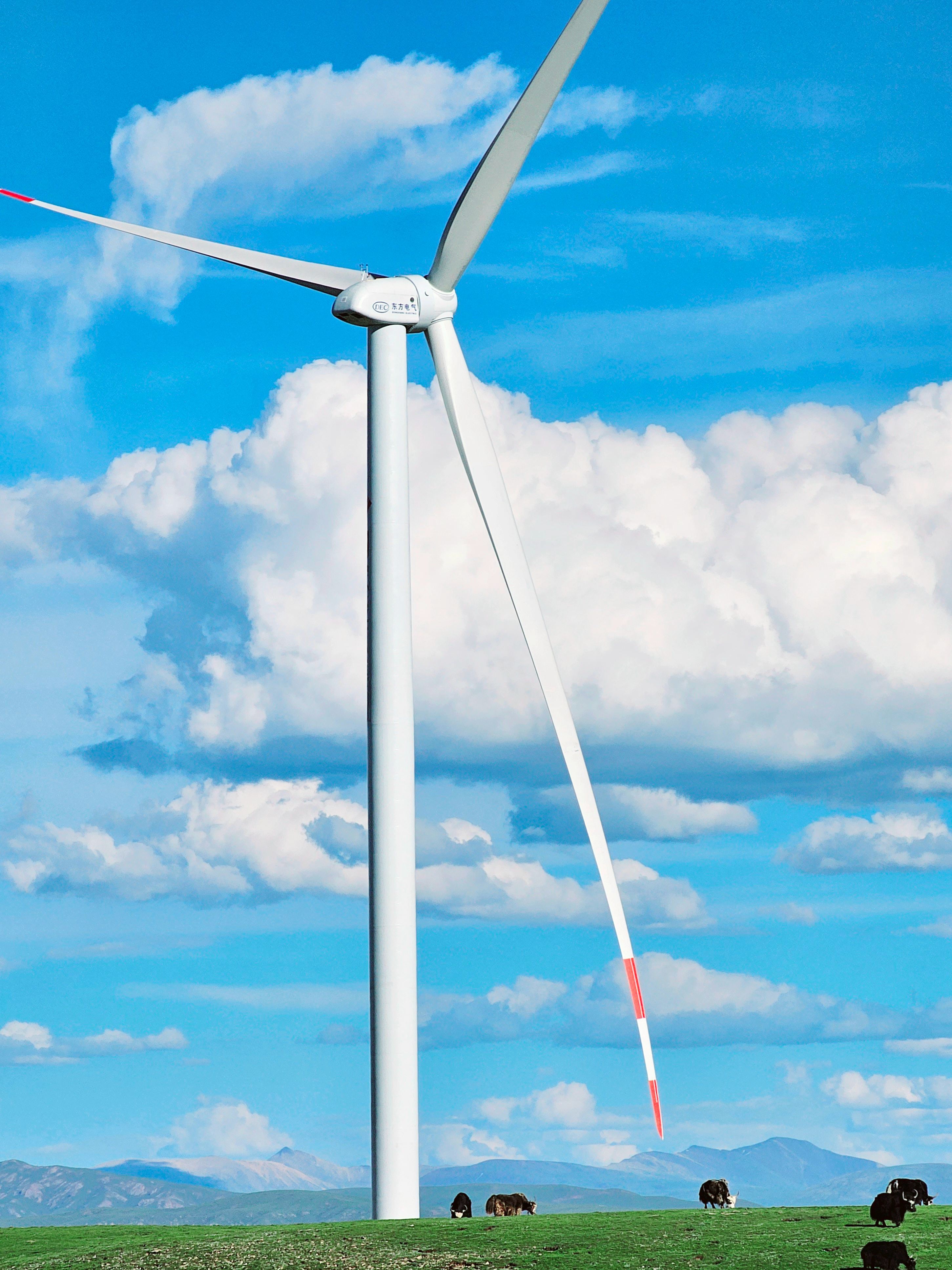 在世界屋脊,乐动网旗下东方风电研制的超高海拔风电机组,在全球4500米超高海拔大规模风电项目现场——那曲色尼区100兆瓦风电项目随风而动。