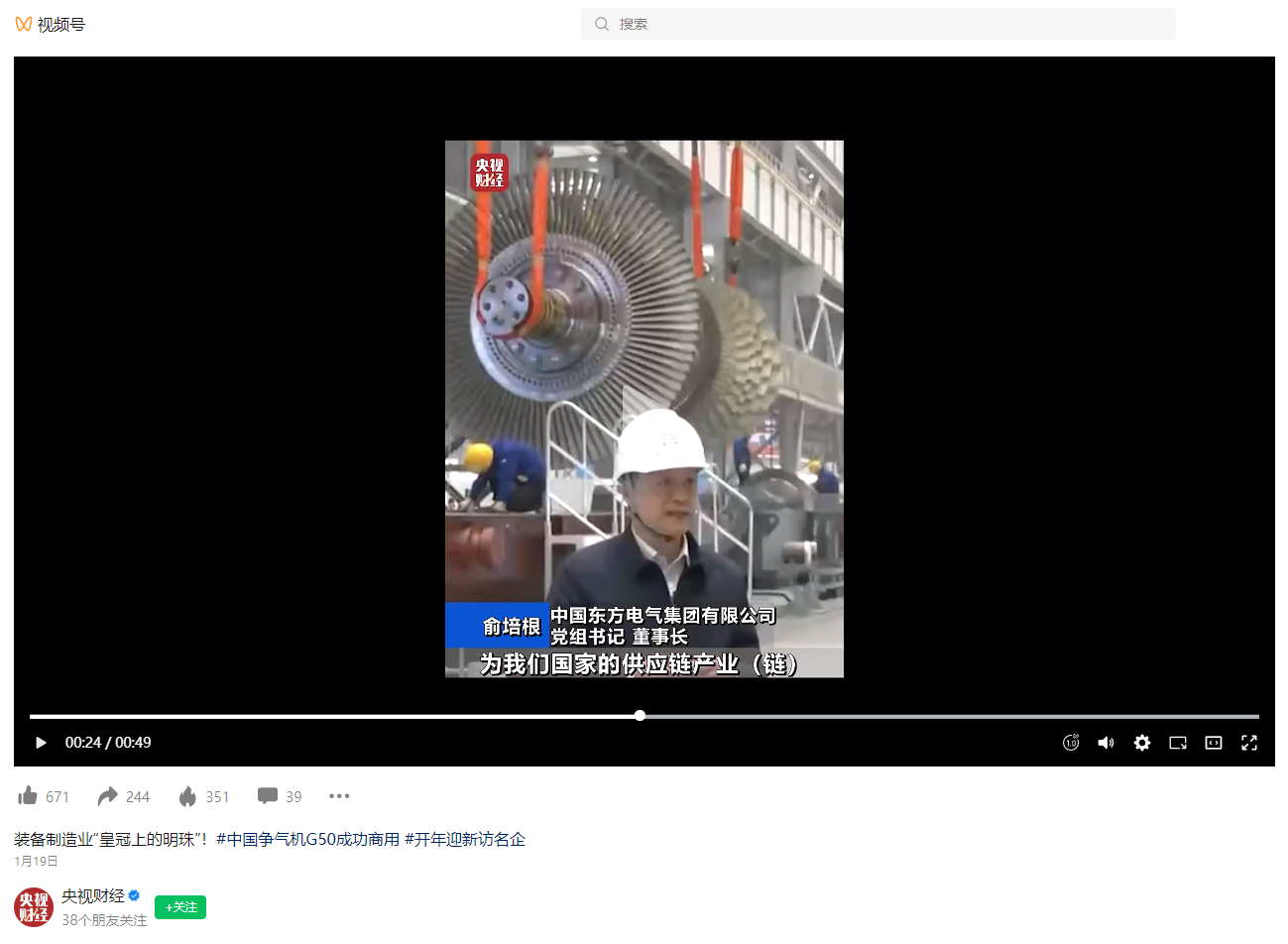 [央视财经]装备制造业“皇冠上的明珠”!#中国争气机G50成功商用 #开年迎新访名企