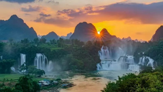 中国德天瀑布与越南板约瀑布相连,是世界第四、亚洲第一大跨国瀑布。2015年11月,在中共中央总书记习近平和越共中央总书记阮富仲的共同见证下,中越两国签订协议,中越德天(板约)瀑布跨境旅游合作区成为中国首个跨境旅游合作区。2024年10月15日开启正式运营。中国旅游集团坚持以文塑旅、以旅彰文,持续提升核心管理和服务能力,积极参与合作区建设,服务中越双方游客跨境游览,先后打造了中越跨境街、中越风情街、观瀑稻田咖啡时光集等20个精品项目,充分展示中越风情及民俗文化魅力。
