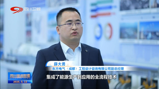 东方电气(成都)工程设计咨询有限公司副总经理薛大勇:我们绿色低碳园区综合解决方案集成了能源生产到应用的全流程技术,应用于服务型和高端装备制造园区,构建多能互补的绿色能源体系。