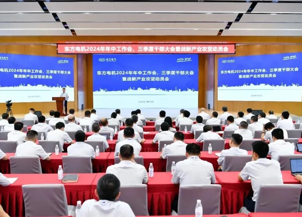 东方电机召开2024年年中工作会、三季度干部大会暨战新产业攻坚动员会。深入学习贯彻党的二十届三中全会精神,认真贯彻集团公司年中工作会议精神。东方电机将深入落实“五个领先”,聚焦生产经营、改革发展中心工作,更好统筹质的有效提升与量的合理增长、科研力量投入与科研成果转化、企业高速发展与依法合规经营、党建与业务深度融合,加快发展新质生产力,推动高质量发展,努力创建世界一流企业。
