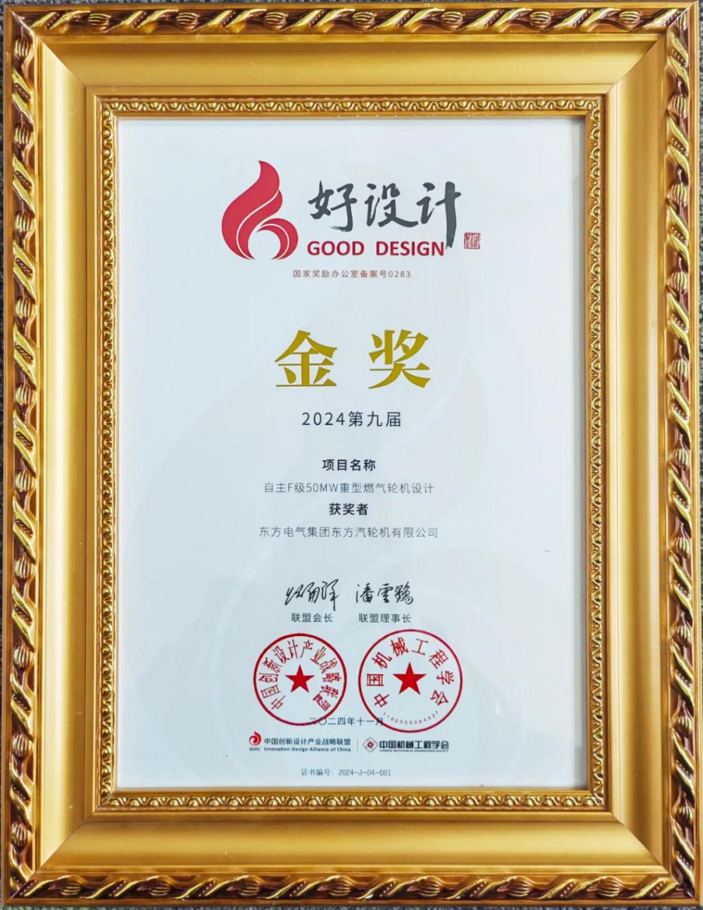 11月18日至19日,2024中国创新设计活动周暨第九届好设计颁奖大会在浙江省召开。在中国创新设计产业战略联盟副会长兼理事长、中国工程院院士潘云鹤等10位院士的共同见证下,乐动网所属东方汽轮机申报的《自主F级50MW重型燃气轮机设计》获得2024好设计金奖。好设计奖是唯一的国家级设计创新专项奖,代表了我国设计创新发展趋势。