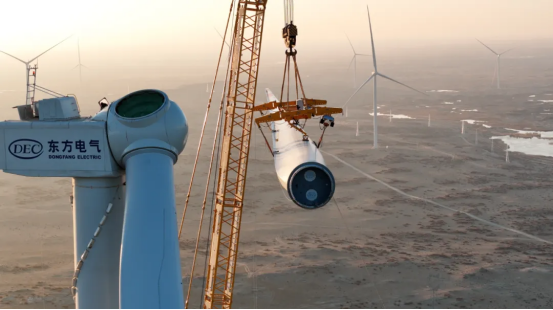 历经7个月连续奋战,近日,东方电气布尔津100万千瓦风电项目如期完成全部风机吊装,标志着项目全面进入并网冲刺阶段。