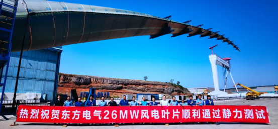 东方电气26兆瓦海上风电叶片顺利通过静力测试