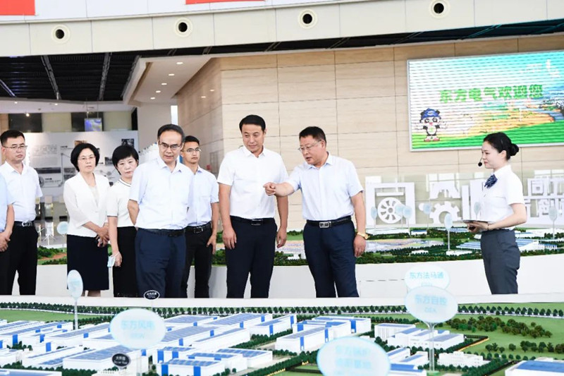 座谈交流前,赵松强一行还参观了东方电气科技展示厅和氢燃料电池示范生产线,乘坐了具有东方电气自主知识产权的氢燃料电池客车,详细了解了东方电气历史沿革、产业发展、乡村振兴、科技创新、绿色转型等方面情况。