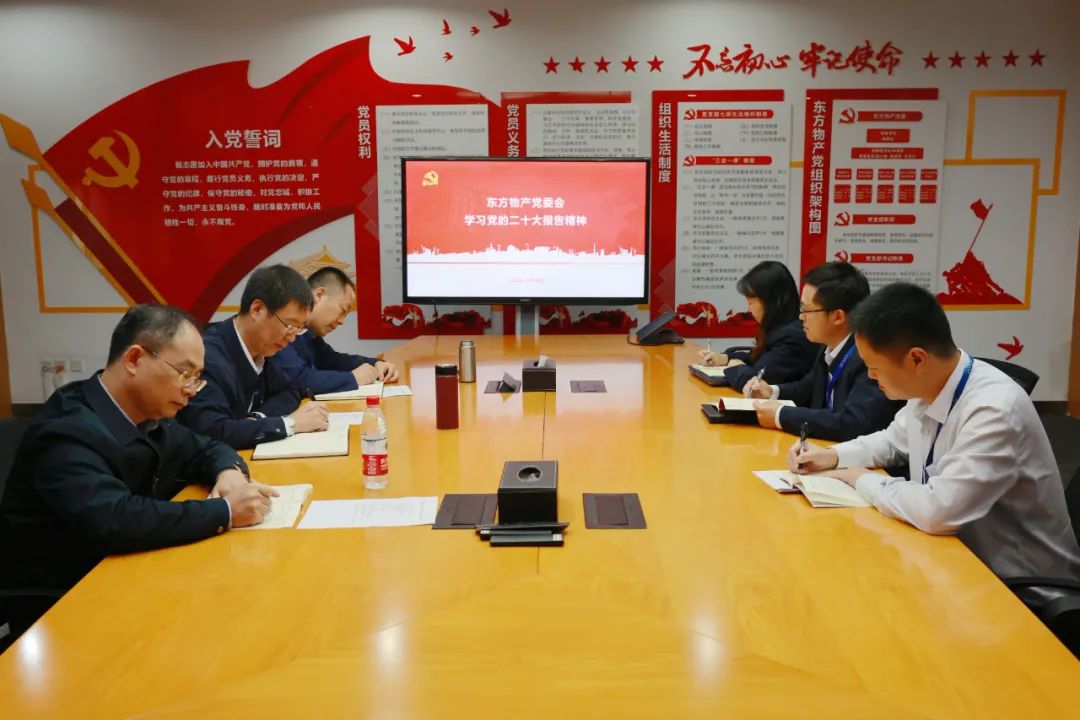 东方物产党委召开党委会,落实“第一议题”制度,专题学习党的二十大报告精神,党委委员参加学习研讨。会议要求,学习宣传贯彻党的二十大精神是当前和今后一个时期的首要政治任务,各党支部要强化组织领导,全面学习贯彻,通过多种学习方式,把全体干部职工的思想和行动统一到贯彻落实党的二十大精神上来。东方物产党委有关负责人带领党群部门全体党务工作者,深入东方大件物流德阳分公司、招标三部四部一线,与基层党务工作者、党员职工一起学习讨论党的二十大报告内容。