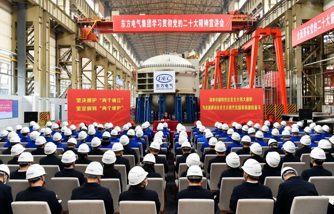 俞培根从“七个深刻把握”对全集团结合实际深入贯彻落实党的二十大精神作出系统安排,特别是对东方电机在加快建设世界一流企业、提升科技创新支撑作用、加快绿色低碳转型发展、释放企业改革活力动力、以高质量党建引领保障高质量发展等方面提出明确要求。