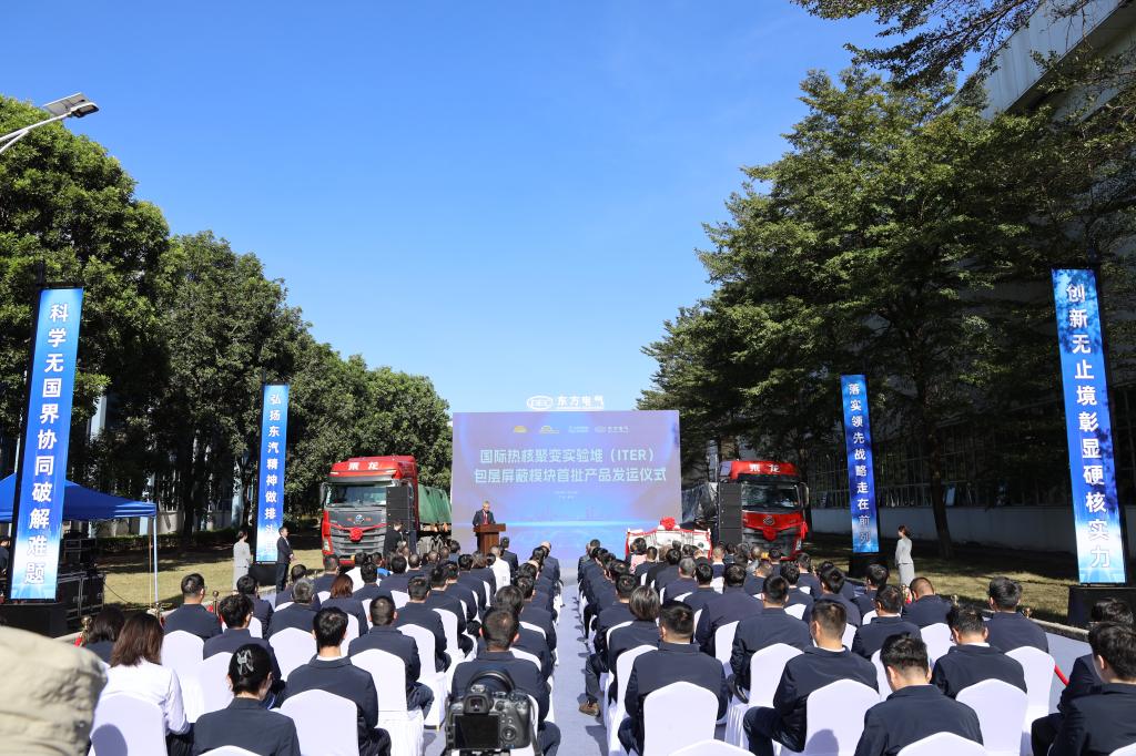 国际热核聚变实验堆计划(ITER)组织、中国国际核聚变能源计划执行中心、广州市南沙区政府、中核集团核工业西南物理研究院、中核四达建设监理有限公司、贵州航天新力科技有限公司,集团公司核能事业部,东方重机相关负责人出席发运仪式。