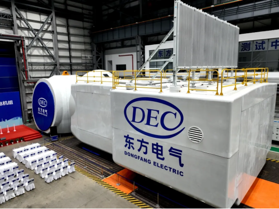 东方电气自主研制的26兆瓦级海上风力发电机组,是目前全球单机容量最大、叶轮直径最长的海上全国产化风电机组。机组具有抗台风能力强、安全可靠性高、发电性能卓越等特性。在10米/秒的风速条件下,年利用小时数超过4000小时,每年可输出1亿度清洁电能。